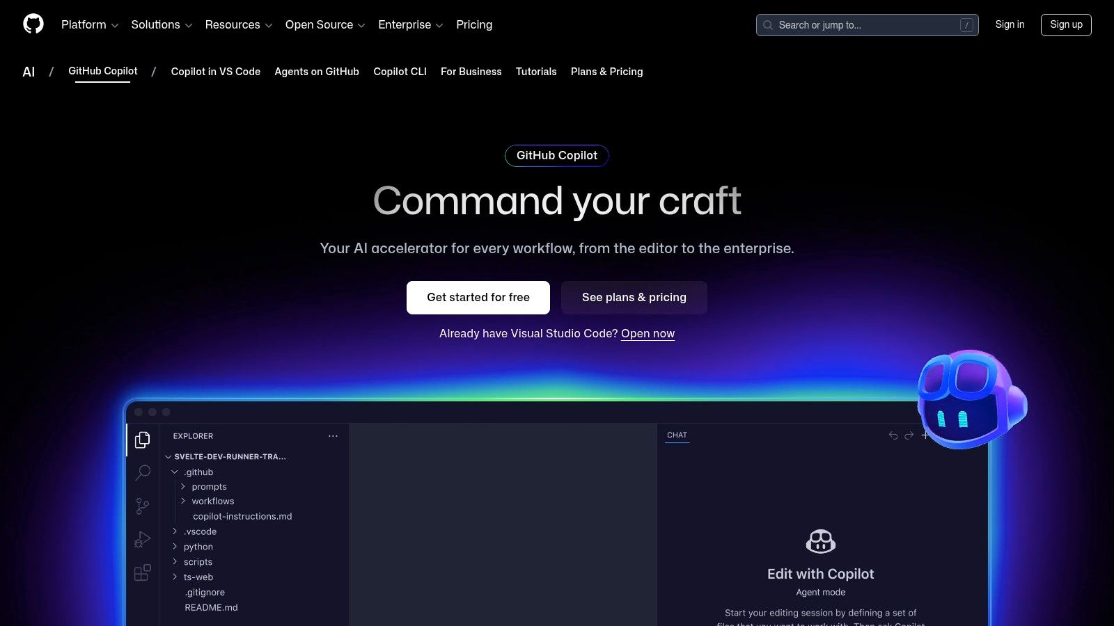 The platform is embedded across VS Code, JetBrains IDEs, and the terminal. It uses models from OpenAI and others to power its features, from conversational chat to its “agent” capabilities that can help plan coding tasks. For teams already invested in GitHub, the organizational plans offer centralized management.