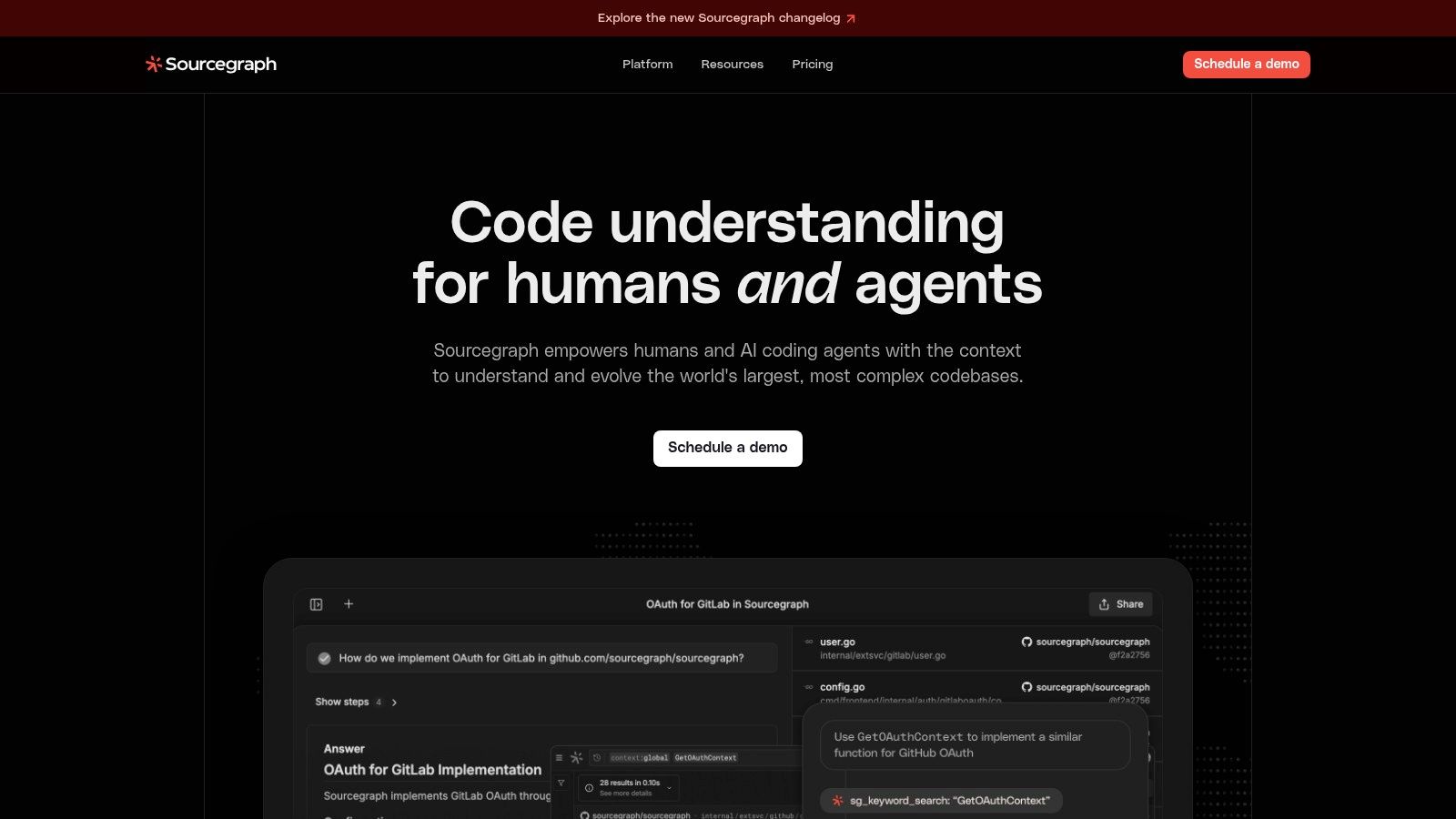 Sourcegraph combines code search with AI agents. It’s designed to tackle the complexity of large codebases, offering repository-wide context that many other tools lack. Its agentic AI, Amp, is built to handle multi-file tasks like refactoring, migrating legacy code, or fixing vulnerabilities.