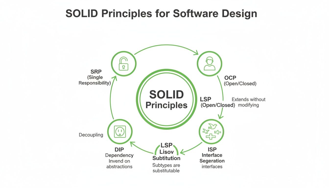 As the diagram shows, each principle reinforces the others, creating a solid framework for building code that’s easier to maintain and scale over time.