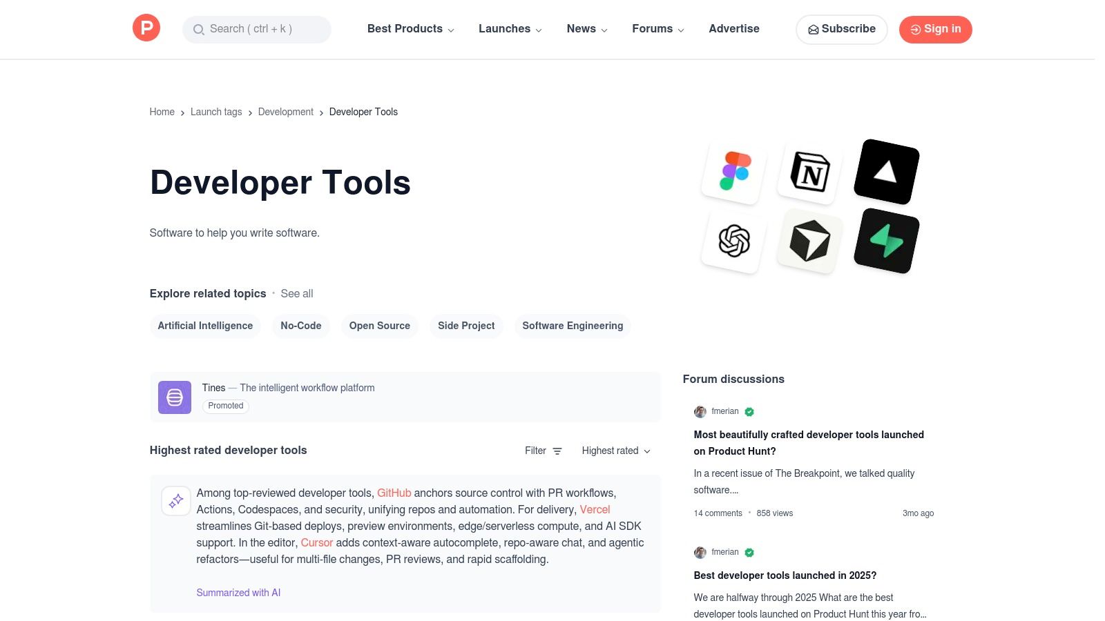 Website: https://www.producthunt.com/topics/developer-tools