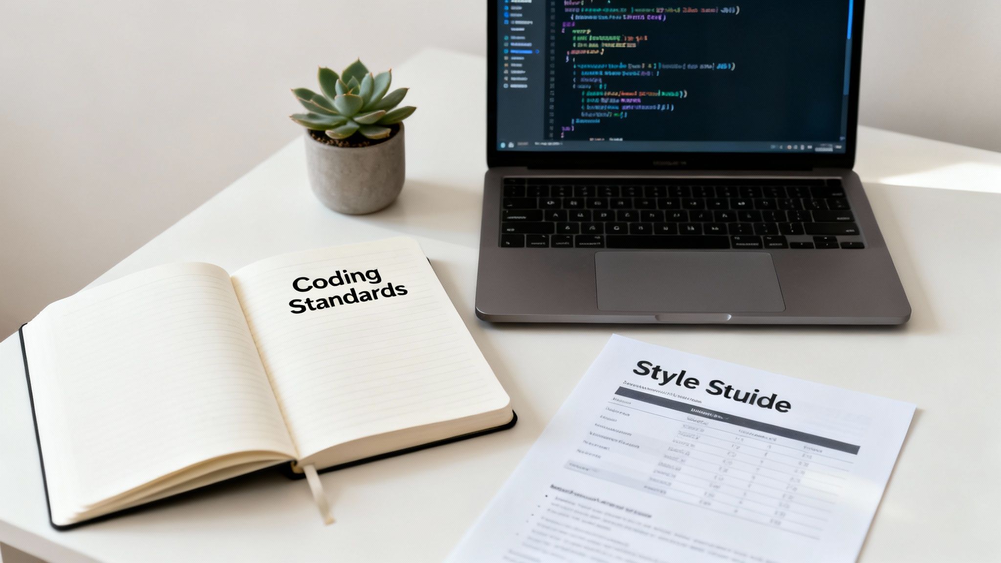 A well-defined set of standards typically covers coding style, architectural principles, and language-specific conventions. By codifying these rules, you create a single source of truth that empowers both the author and the reviewer. The author can write code with confidence, knowing it aligns with team expectations, while the reviewer can focus on more significant issues like logic, security, and performance, rather than commenting on trivialities like brace placement or variable naming. This foundational step is a key code review best practice that ensures consistency and quality at scale.