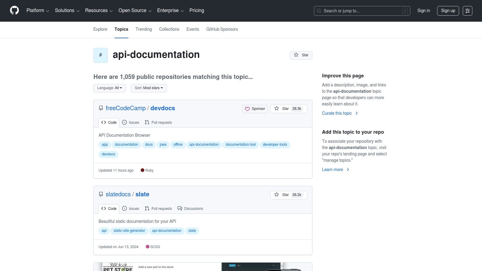 GitHub serves as a vast, unfiltered library for example API documentation, offering direct access to source code and documentation toolchains. By exploring topics like api-documentation, developers can find thousands of real-world repositories and community-vetted templates.