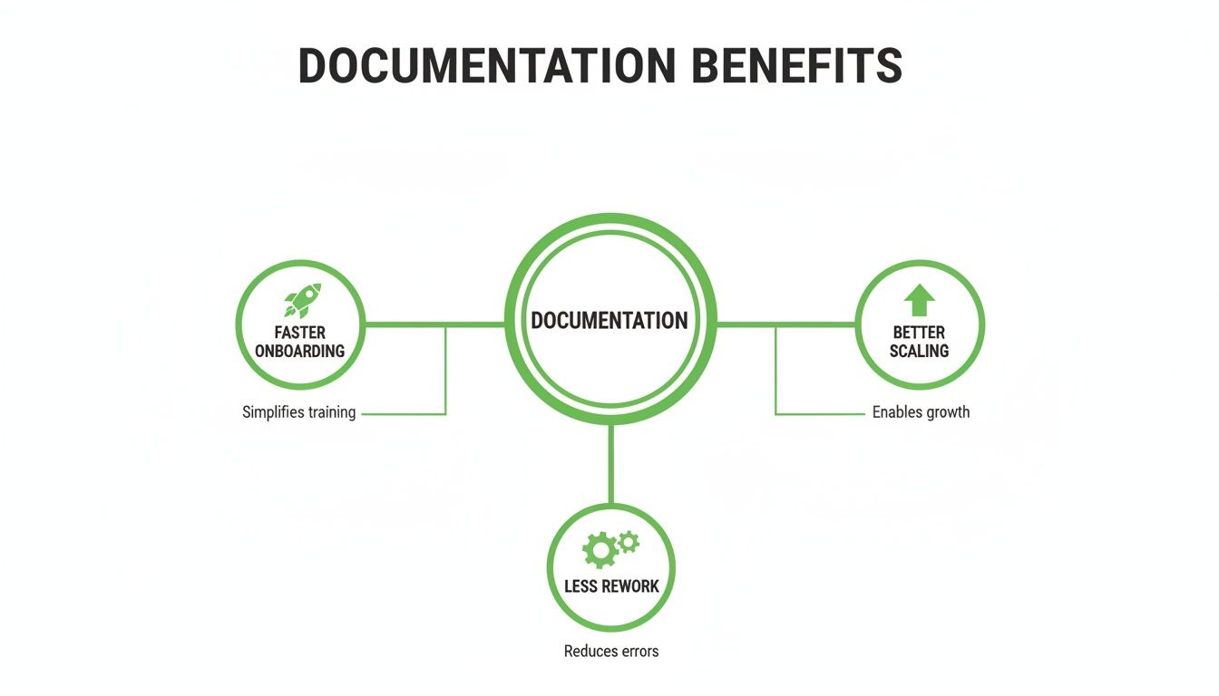 This visual makes it clear: systematic documentation is a direct line to operational efficiency. It helps teams scale, get new members up to speed quickly, and avoid costly rework.