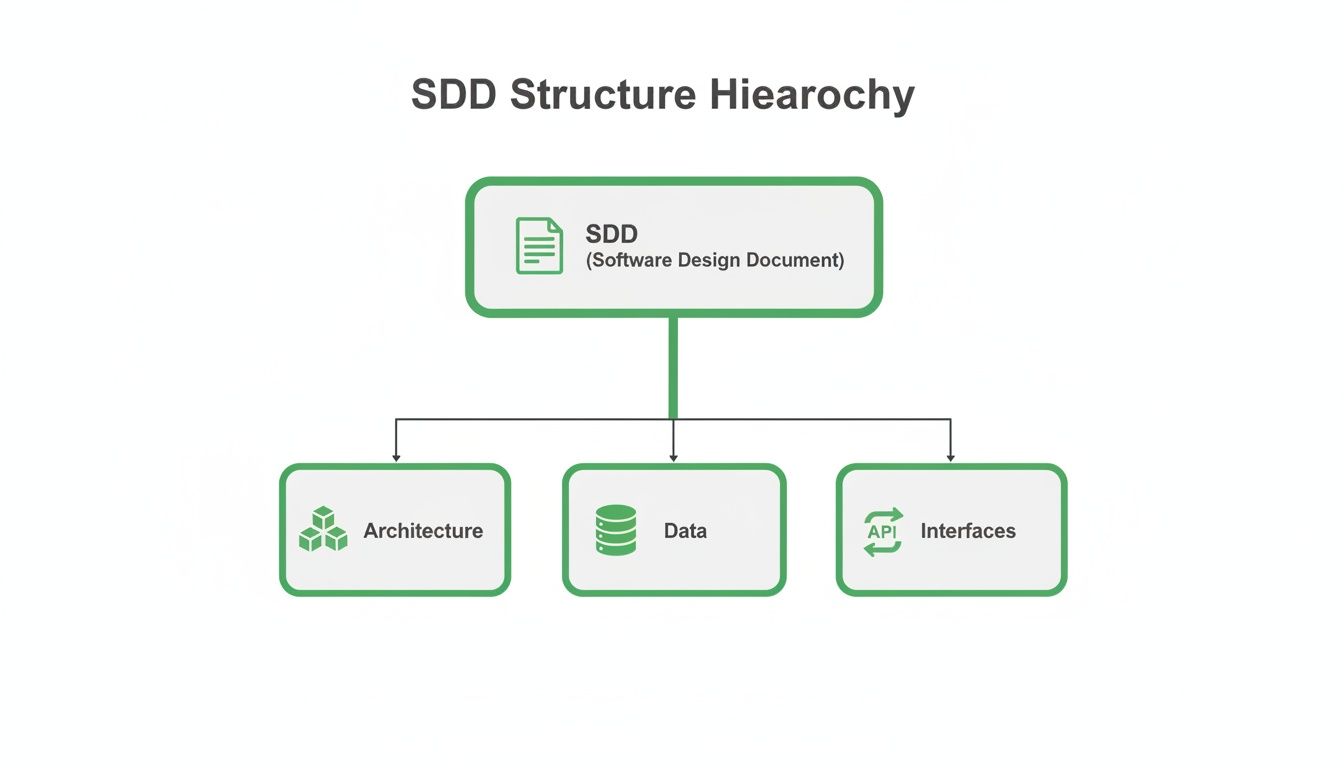 A solid Software Design Document (SDD) isn’t just a random collection of notes; it’s built on a standardized structure that makes sure every critical aspect of the software gets the attention it deserves. The breakdown here follows battle-tested best practices, taking cues from standards like IEEE 1016 to give you a reliable starting point.