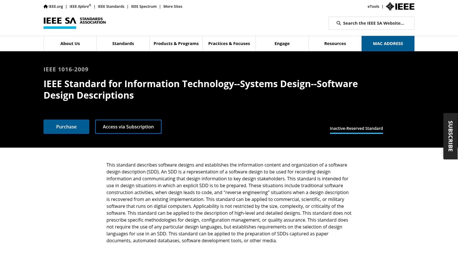 Website: IEEE 1016-2009 - IEEE Recommended Practice for Information Technology