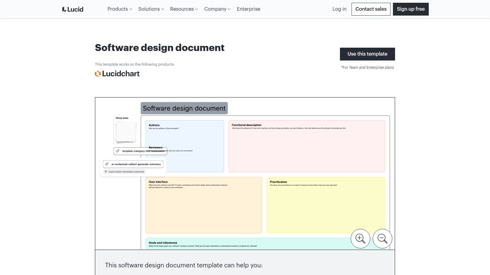 Lucid distinguishes itself by treating the software design document as a primarily visual and collaborative artifact. Where other tools might bolt on diagramming, Lucidchart and Lucidspark are built around it, offering a dedicated Software Design Document template that excels in visually representing complex systems. The platform’s core strength is its enterprise-grade diagramming capabilities, allowing teams to embed UML, flowchart, and architecture diagrams directly into the document.