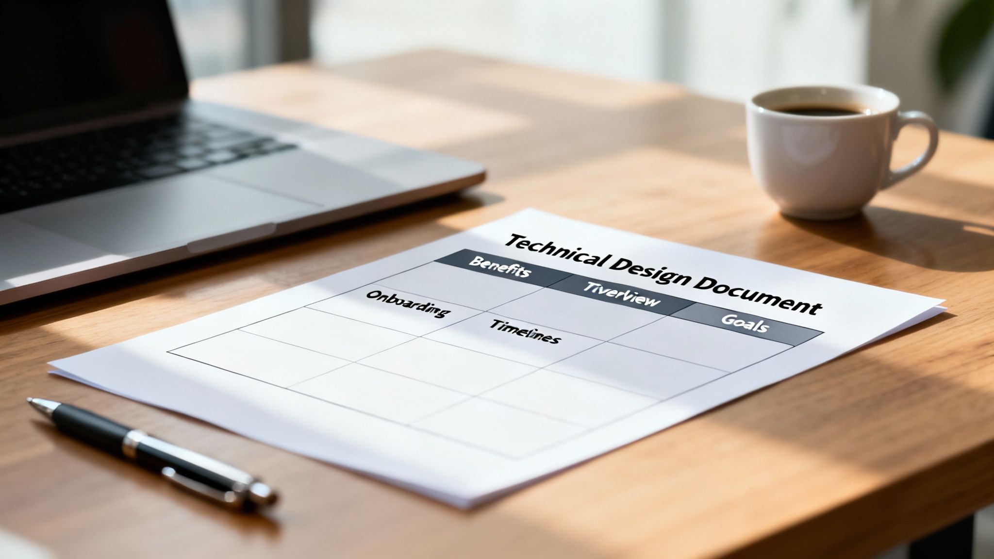 A Technical Design Document (TDD) is all about the “how.” It gets into the weeds of a specific feature or component, spelling out the implementation details like data models, API contracts, and class structures.