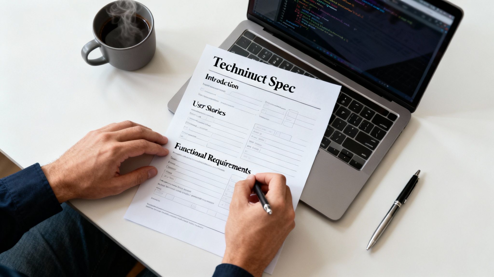 Tired of projects spiraling out of control due to fuzzy requirements? A proper technical spec is your best defense, acting as the blueprint that keeps your development team on track. It’s the single source of truth that prevents scope creep and makes sure everyone—from stakeholders to engineers—is on the same page before a single line of code gets written.
